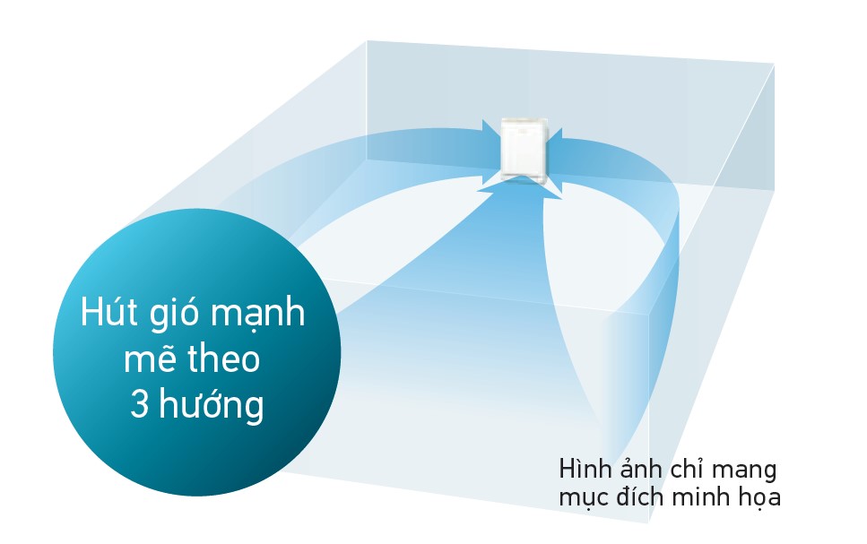 Lưu lượng gió lớn 7.0m3/phút hút gió từ 3 hướng nhanh chóng làm sạch không khí trong phòng.