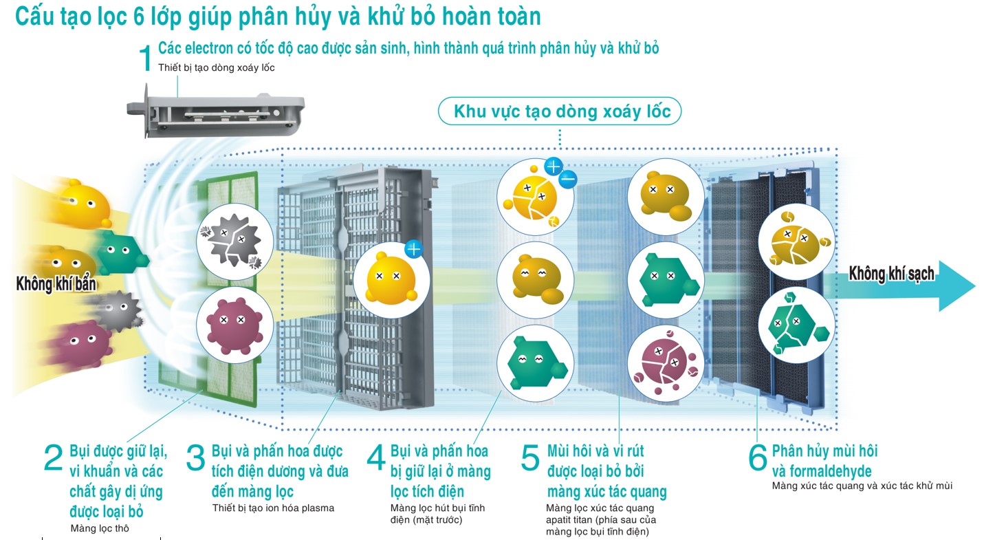 Cấu tạo lọc 6 lớp giúp phân hủy và khử bỏ hoàn toàn.