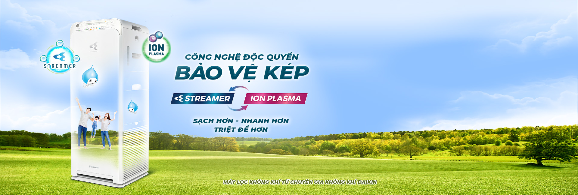 Giải pháp toàn diện cho không khí trong nhà: Streamer + Ion Plasma, tạo ẩm an toàn; tuổi thọ phin lọc HEPA đến 10 năm; hút bụi 3 hướng.