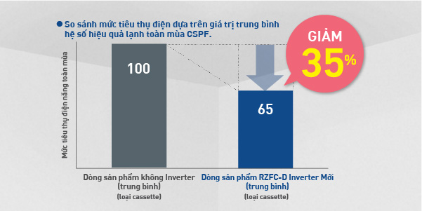 Công nghệ Inverter mới giúp giảm mức tiêu thụ năng lượng trong suốt quá trình làm lạnh.