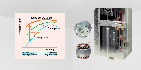 Dòng sản phẩm biến tần DC của Daikin được trang bị máy nén xoắn ốc DC từ trở.